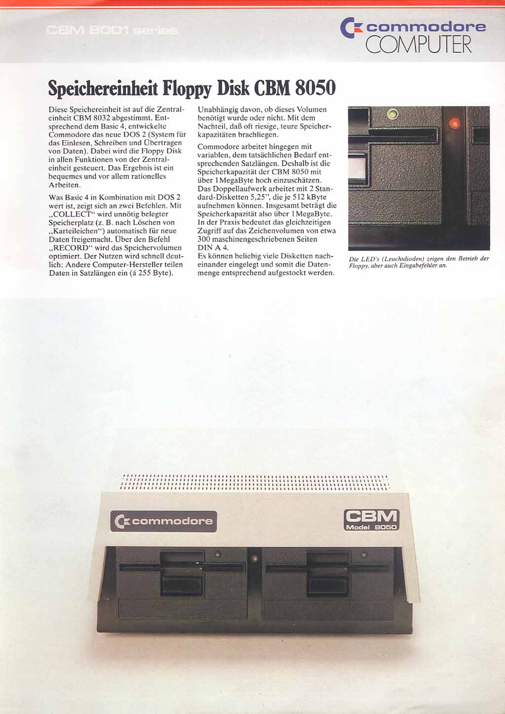 Dieses einseitig schreibende Diskettenlaufwerk für die 8000er-Serie war in der Lage auf (D)ouble-(D)ensity-Disks ein halbes Megabyte an Daten aufzunehmen. Der große Konkurent "Big Blue" schaffte selbst mit doppelseitigen Disks derselben Dichte nur 360 kB!