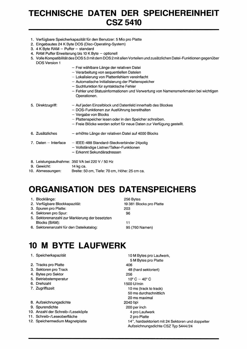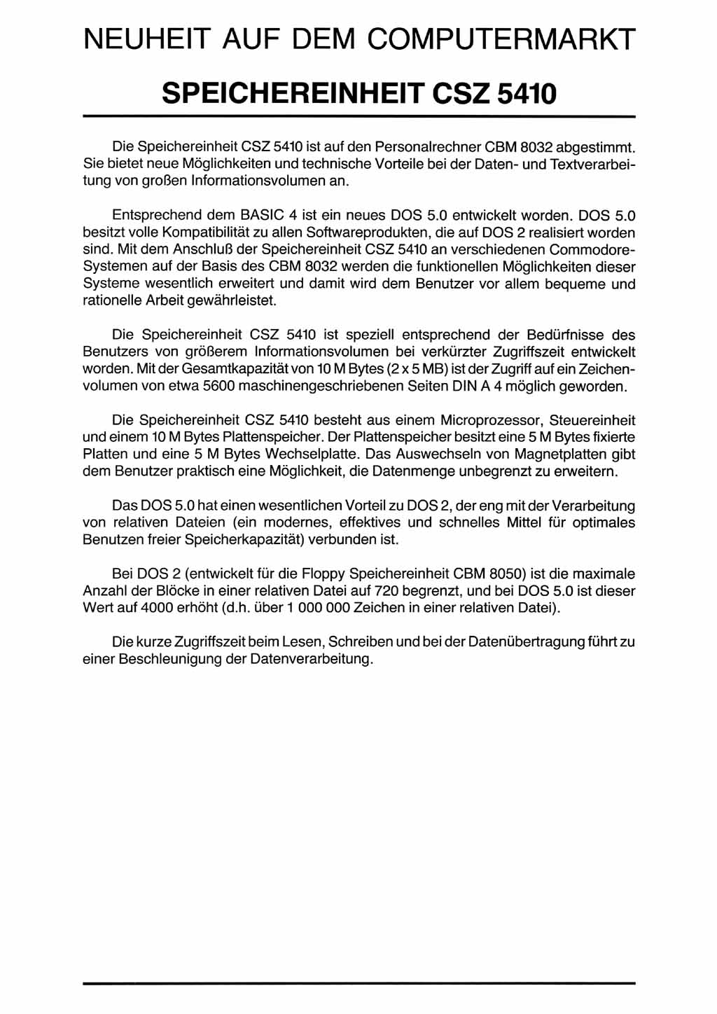 The manufacturer "CSZ Stickler" from Worms/Germany introduces a substitutionable hard-disk-system for the CBM8000-Series. It consists of a firmly installed disk with a size of 5 MB which can be expanded with substitutionable disks of the same capacity. Each of this magnetic disks has a diameter of 14"! At the same time Commodore offers the hard-disk-units CBM D9060/9090. They are installed in the housing of the single-floppy-drive CBM2031 HP and have a capacity up to 7,5 MB!