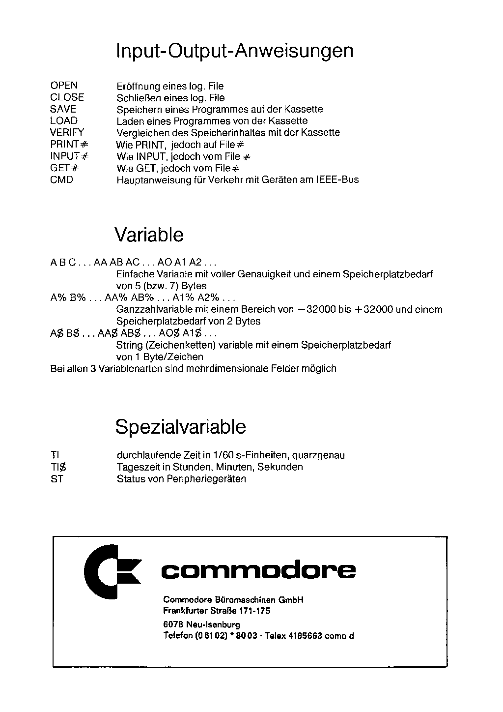 Ein Prospekt aus dem Jahre 1977, der die verschiedenen Einsatzmöglichkeiten und die Leistungsfähigkeit des PET2001 anpreist. Da der Name "PET" lizenzrechtlich für die Firma Philips geschützt ist, war diese Maschine, im Gegensatz zum internationalen Markt, in Deutschland das einzige Modell mit diesem Namen.