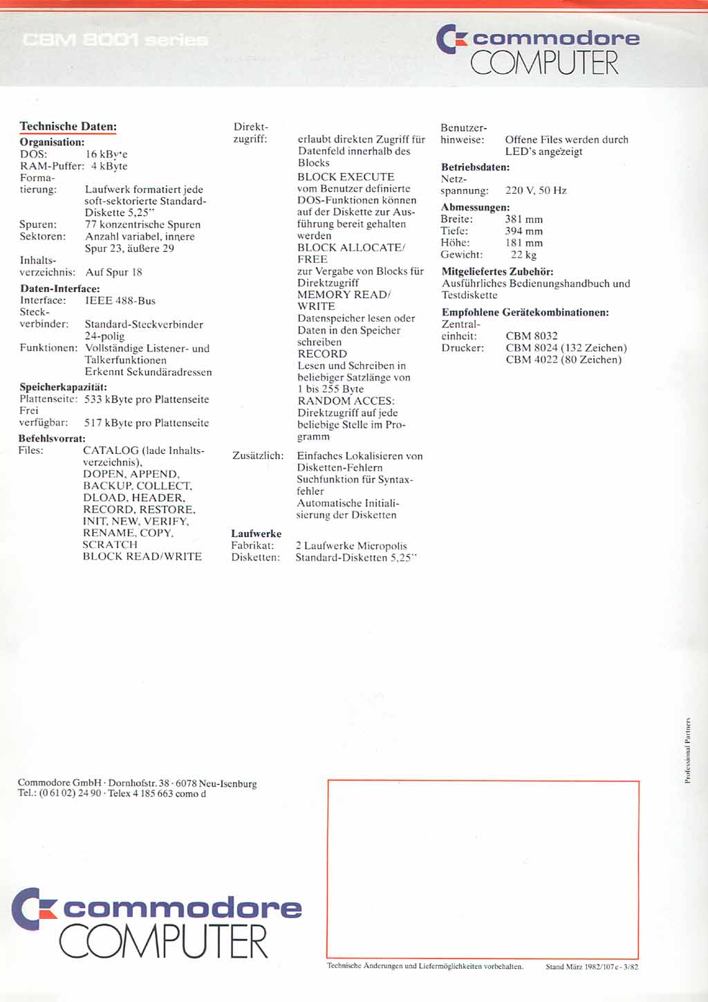 Dieses einseitig schreibende Diskettenlaufwerk für die 8000er-Serie war in der Lage auf (D)ouble-(D)ensity-Disks ein halbes Megabyte an Daten aufzunehmen. Der große Konkurent "Big Blue" schaffte selbst mit doppelseitigen Disks derselben Dichte nur 360 kB!