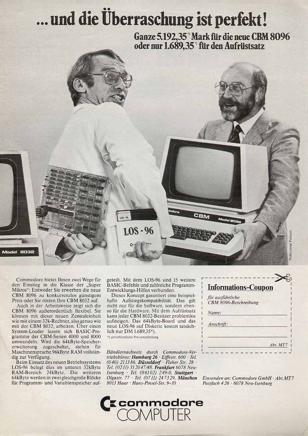 Wie diese Zeitschriftenwerbung zeigt, bot Commodore auch einen Aufrüstsatz für das Basismodell CBM 8032 an.