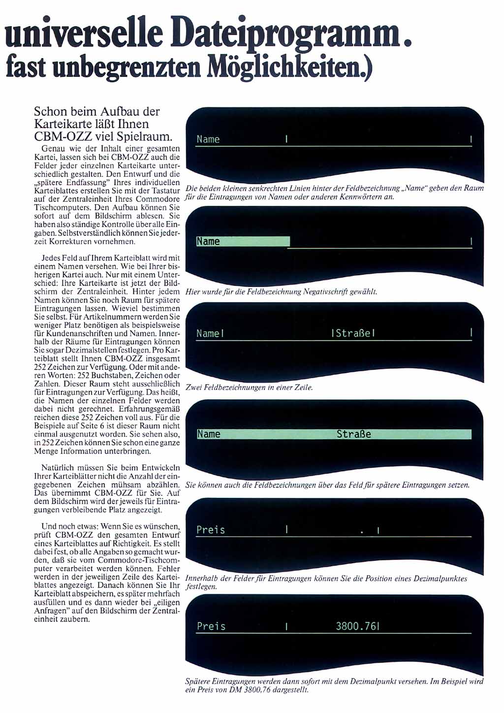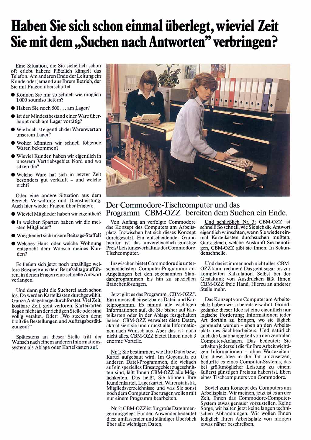 Mit der universellen Datenbank "OZZ" vervollständigte Commodore dann Ende des Jahres die Programmpalette für die 8000er Rechner zu einem "Office-Paket".