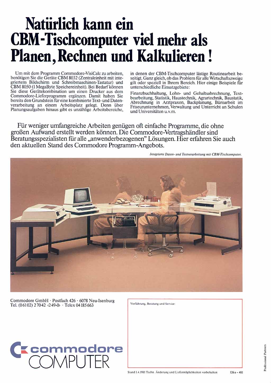 Ebenfalls aus dem Jahr 1981 stammt diese Werbung für die Commodore-Version der bekannten Tabellenkakulation "VisiCalc".